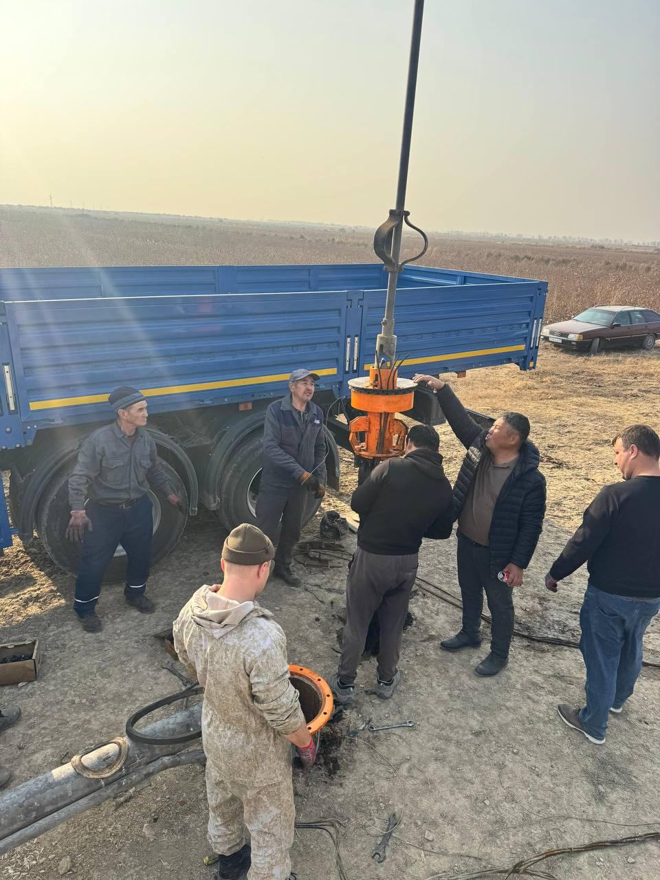Құбырсыз су көтеруге арналған жабдық сынақтары «Қазсушардың» Түркістан филиалына қарасты диаметрі 426 мм болатын ұңғымада жүргізіліп жатыр. Сонымен қатар ҚазСШҒЗИ сарапшылары филиал мамандарына арналған оқыту семинарын өткізіп, қажетті құрылғыларды пайдалану, монтаждау және бөлшектеу тәртібін түсіндірді.