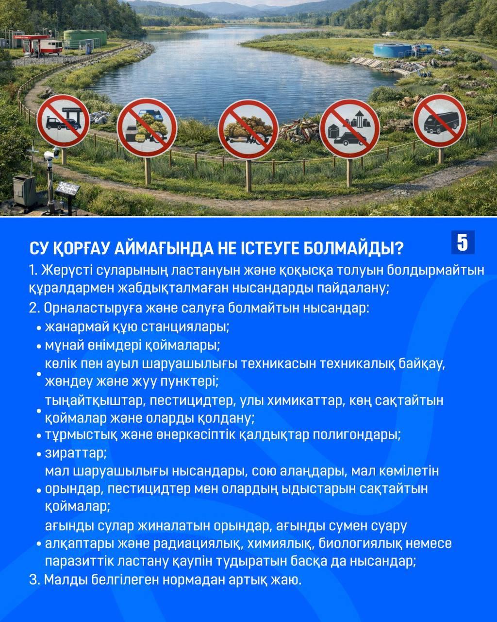 5. Су қорғау аймағында не істеуге болмайды?